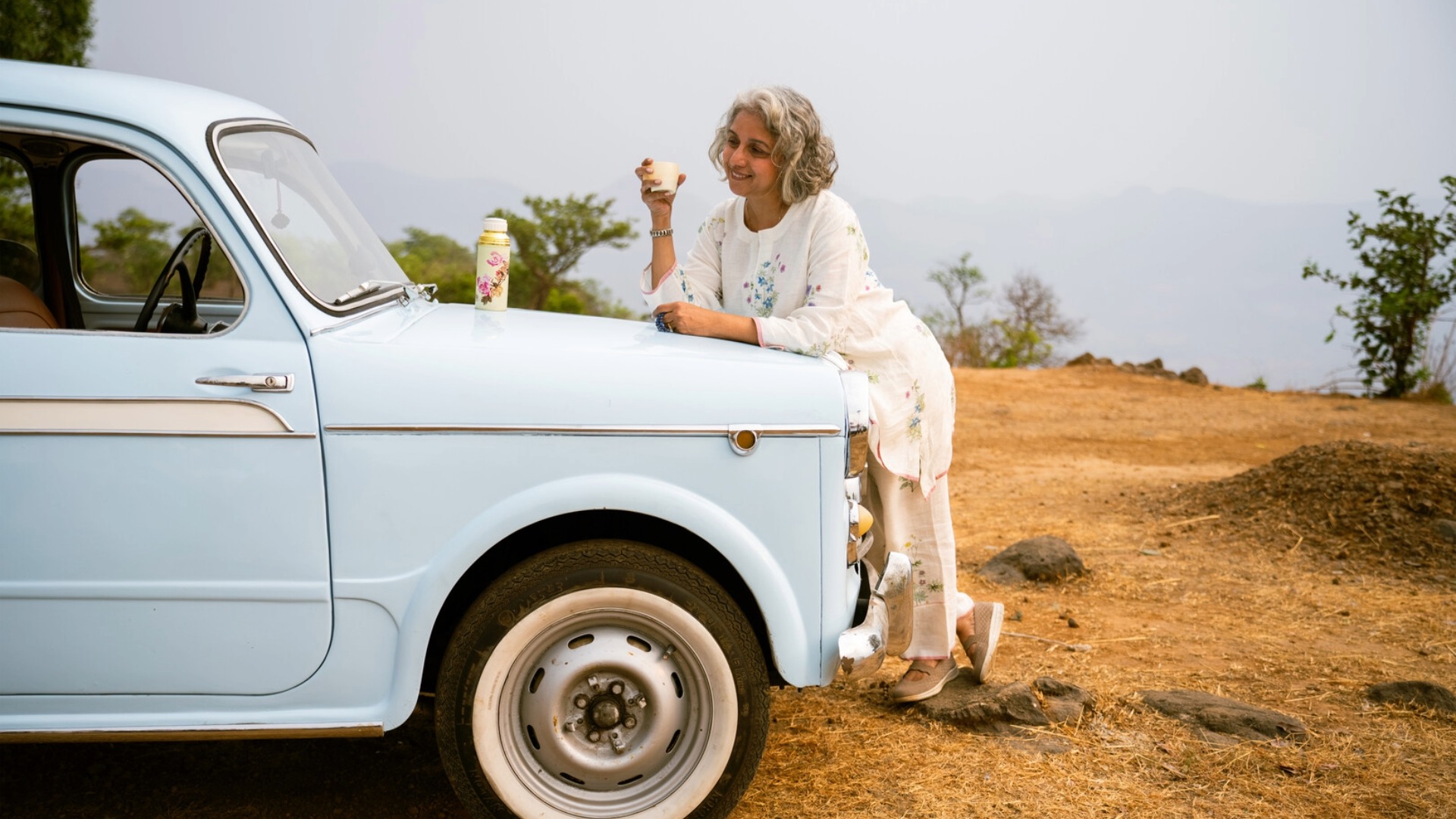 In Hindi (an Indian language), Aasmani means that shade of light blue which is the colour of the sky. To Smita, a spunky woman in her sixties, her steadfast companion of over five decades, a powder blue vintage FIAT called Aasmani is the very sky that shaped her life. They had journeyed through all the hues of life. Seasons, landscapes and relationships changed but Smita and Aasmani stayed together. In the winter of their lives, Smita and Aasmani's precious bond turns increasingly precarious. They find themselves struggling with dwindling funds to maintain functionality and questions of relevance. There is growing pressure to replace Aasmani with a more modern cost effective alternative. Desperate to hold on to Aasmani, Smita partners with her razor-sharp 10-year-old granddaughter Tiya to find a way to save her. Will they be able to save Aasmani? Or will Aasmani do her own saving? Buckle up and get ready for a bumpy but never-not-fun ride.